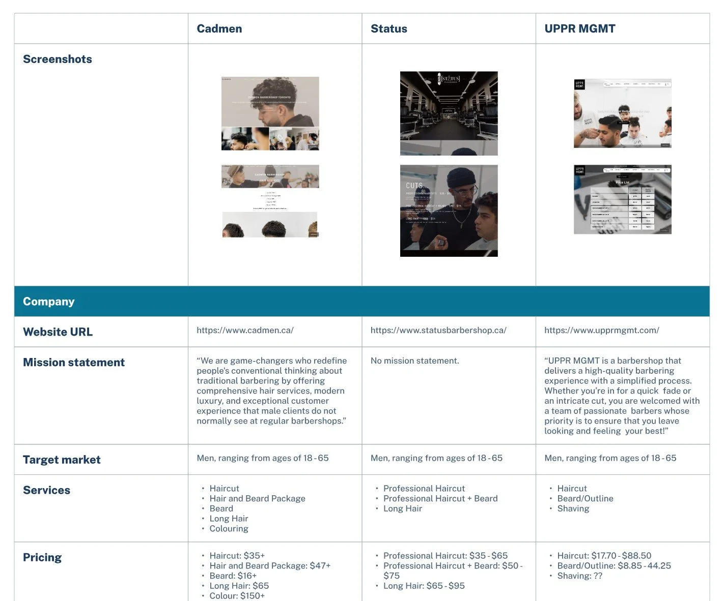 During my research, I discovered that some barbershops lacked websites entirely, while those with online presence consistently utilized third-party booking systems. Barbershop websites primarily served to showcase workmanship, detail services, and provide contact information.