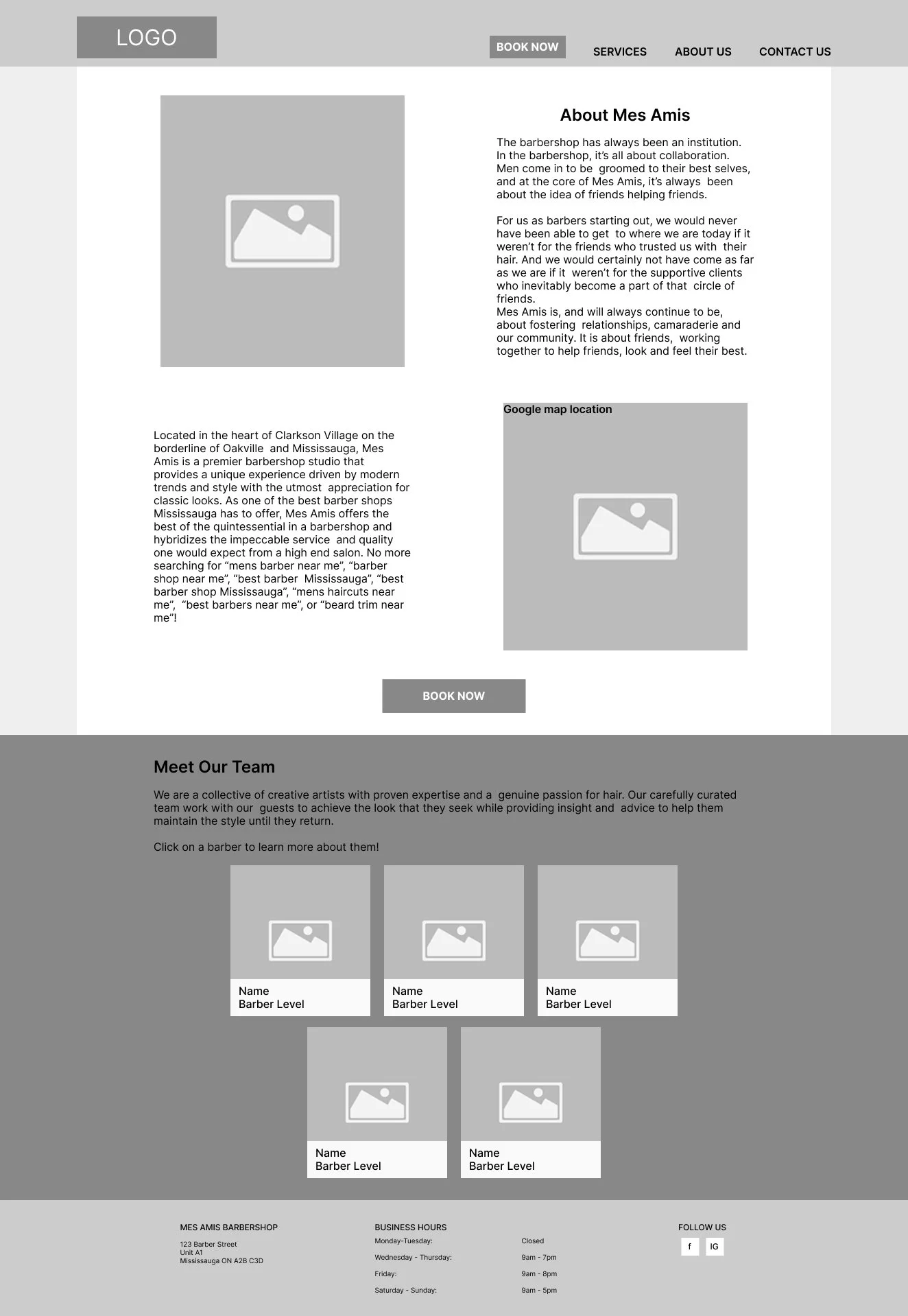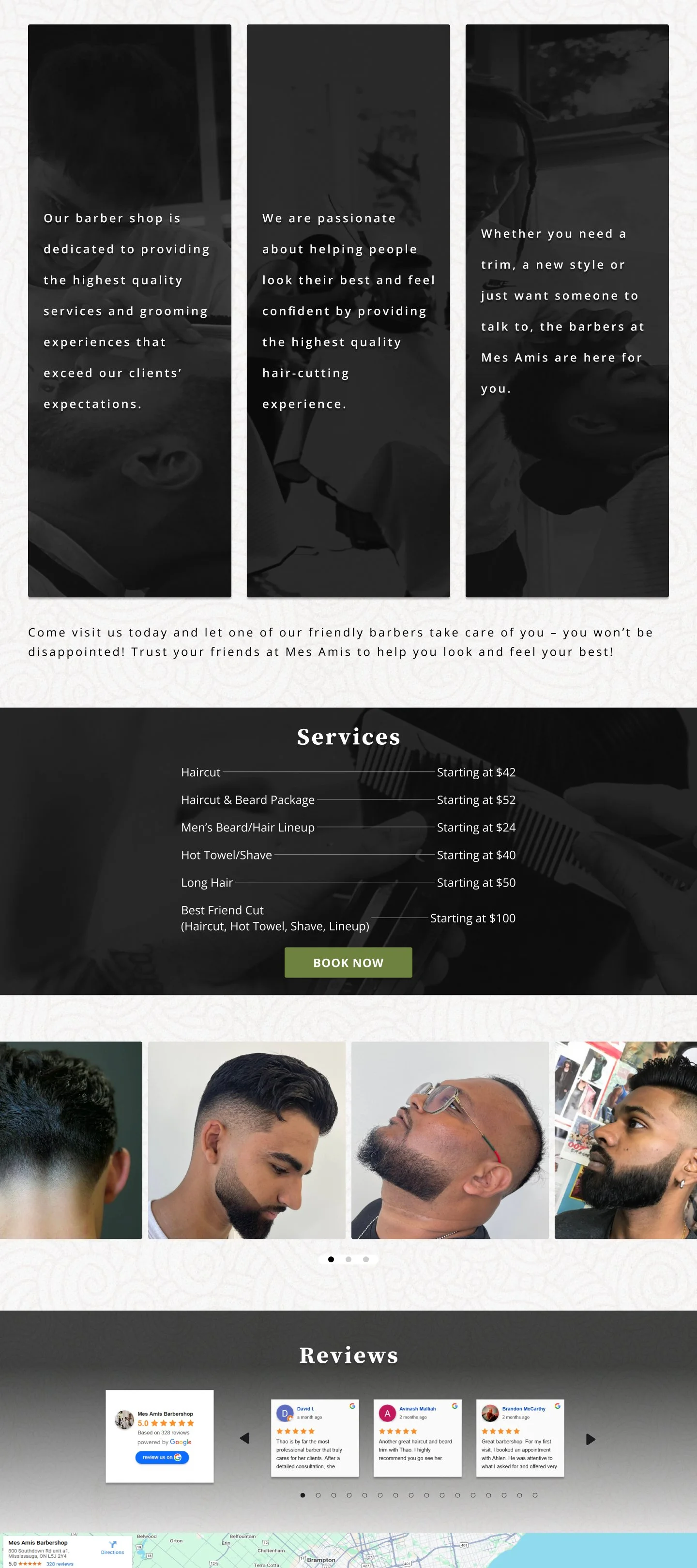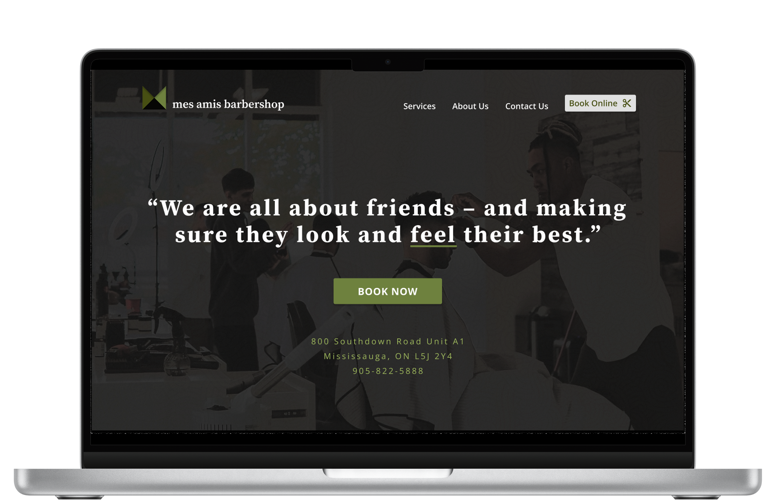 The current Mes Amis website suffers from an outdated aesthetic and fails to provide an adequate user experience on mobile devices. This positions it unfavourably when compared to the online presence of other competing local barber shops.