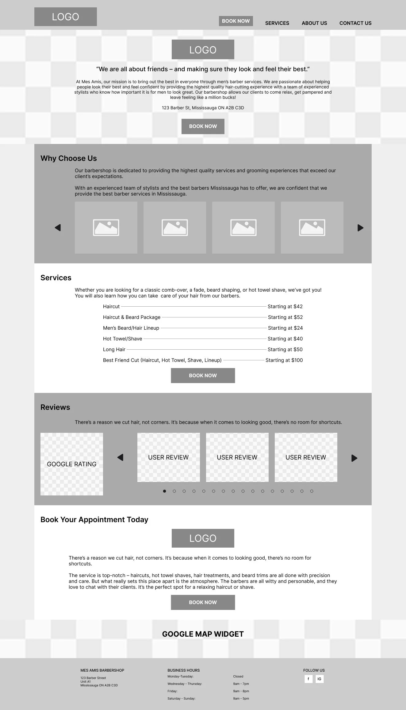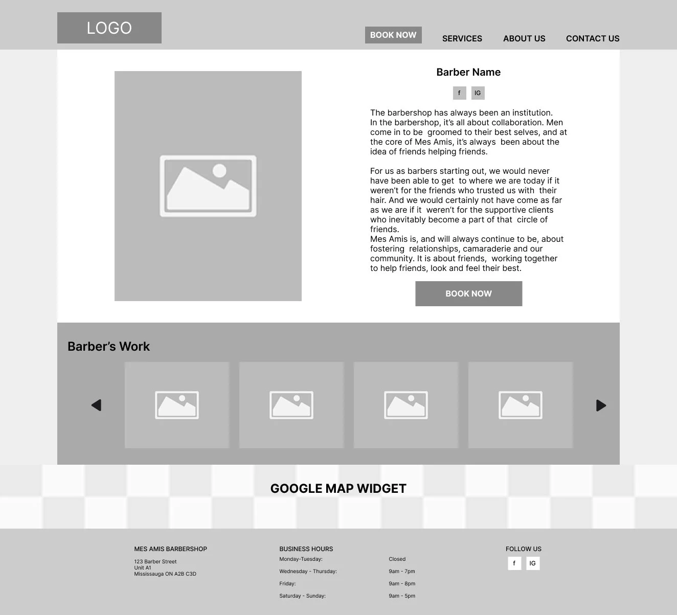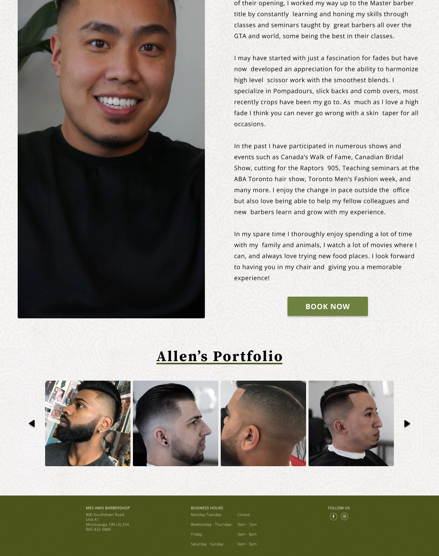The current Mes Amis website suffers from an outdated aesthetic and fails to provide an adequate user experience on mobile devices. This positions it unfavourably when compared to the online presence of other competing local barber shops.
