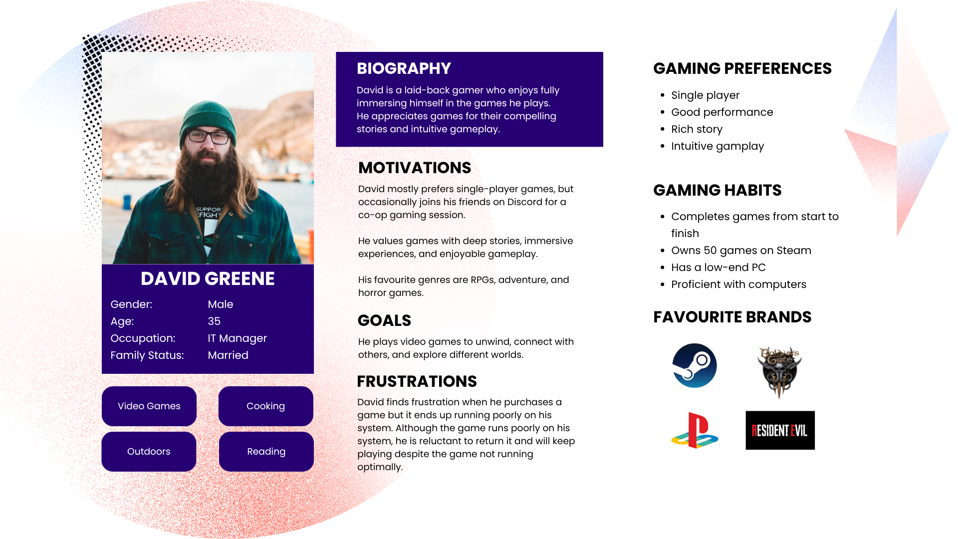 I interviewed 6 regular Steam users to understand their game and software purchasing habits, with the objective of identifying ways to reduce disappointment and refunds caused by poor system performance.