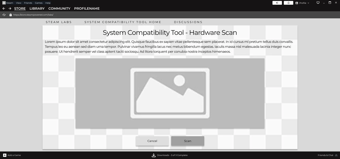 I focused on screen structure, ensuring optimal positioning and spacing. The feature would be housed within Steam Labs, where upcoming features are introduced for users to explore and test.